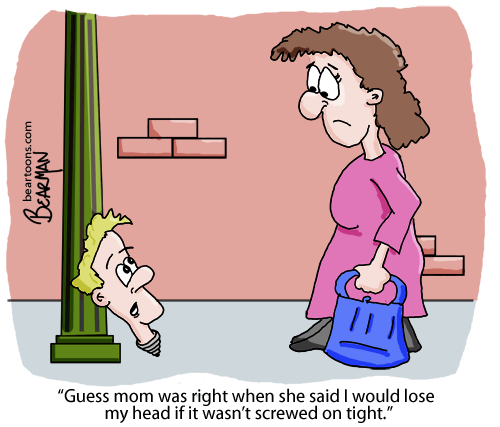 LOL! I loved the cartoon, Bearman. I’m going to share it with my own Mom who has always maintained that my head wasn’t screwed on right. Now I’ll have proof that my head’s at least screwed on tight enough to stay put. 🙂