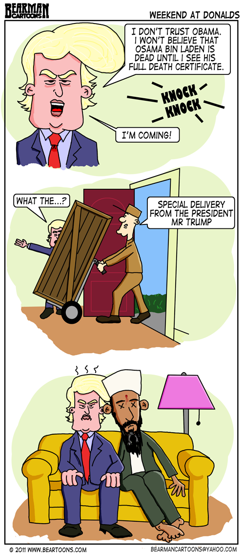 So is Osama his latest apprentice??? Great cartoon/comic. You could make a movie where Donald takes him on all sorts of adventures & call it “Weekend at Bin Laden’s”