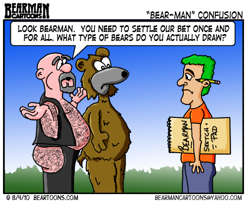 Anyway, I knew that there would be some confusion with folks looking for cartoons of either definition 2 or 3. I was just waiting for the day. Well it finally came in a nice email from a guy named Bob. Bob said “just a quick question – do you in any way relate with Bear culture, as in the gay sub-culture? I didn’t find any cartoons relating to it, so I’m guessing no, but I thought I would ask.”