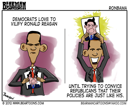 So my last politically inspired cartoon poked fun at the Republicans so now it is the Democrats turn. Time and time again I see Democrats invoking the spirit of Ronald Reagan to shame Republicans into agreeing with their policies. Somehow Reagan has turned from representing all things evil with Conservatives to the voice of an elder (albeit deceased) elder statesman.