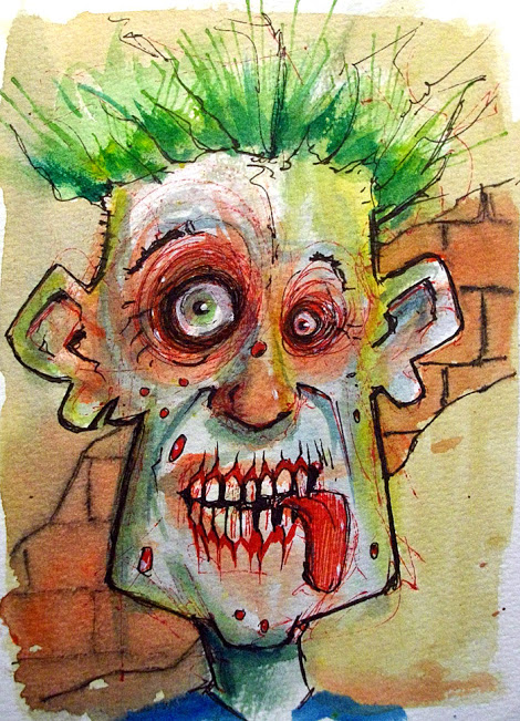 Today’s cartoon was inspired by a Google Plus post by S. Heart. His comment: “Zombie Subway: Eat Flesh” Someone quickly pointed out that someone else already spoofed the name on a tshirt with a Zombie: Eat Flesh logo. But of course I wanted my own Zombway cartoon showing the zombie actually eating a “$5 Footlong”. And by footlong I mean dismembered foot.
