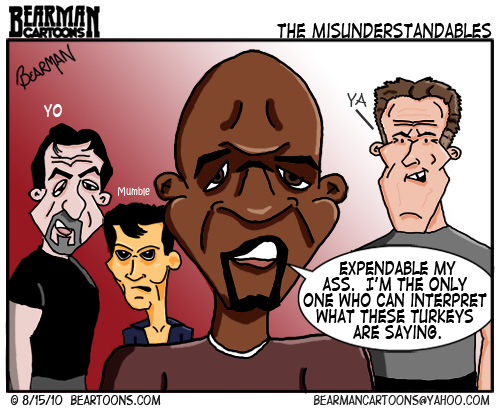 Sylvester Stallone’s new movie, The Expendables, was released on Friday. It’s both a whos who and a whos that of action films. The main guy in this cartoon is former Everybody Hates Chris dad, Terry Crews. Before that show (and to some of you now) he is one of those “That Guys” in Hollywood where you might not know his name but you definitely have seen him in plenty of movies including the classic “White Chicks”.