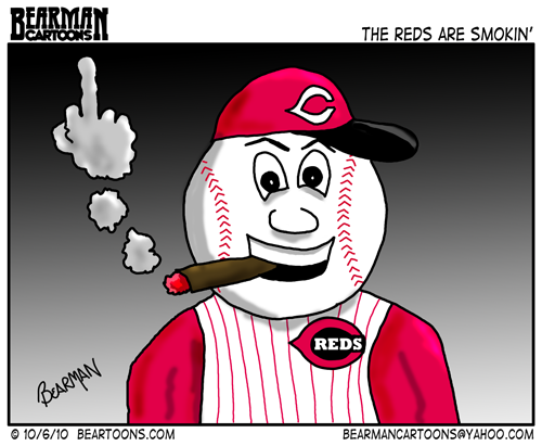 I love that Reds cartoon. This is sort of off-topic, but still Baseball – have you ever made a cartoon of that Cubs fan who totally devastated their season by reaching out for that fly ball? I think Steve Bartman was his name. I’d love to see what you’d do there.