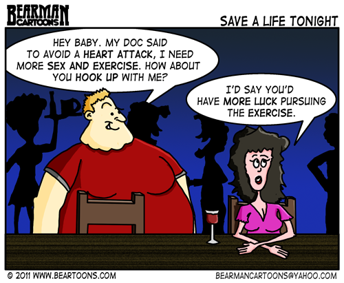 […] cartoon was inspired by Sunday’s post regarding the article that said people who have sex or exercise infrequently are more prone to heart […]