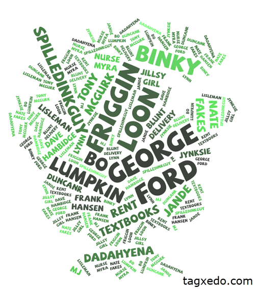 So I found a very fun site that George Ford will now yell at me for him wasting countless hours playing there. Tagxedo not only lets you create word clouds but also allows you to create custom shaped word clouds. I created a list of my top commenters over this year. By duplicating the names of the most frequent commenters in my list, it allows you to see them bigger than the rest. And the custom shape? You might recognize it as the silhouette of my famous green hair gravatar.