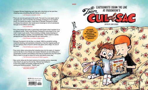 Seems like May is my month this year for causes. Today is about Parkinson’s Disease. Richard Thompson is the award winning cartoonist behind the syndicated strip Cul de Sac. Upon learning that Richard was recently diagnosed with Parkinson’s, his friend Chris Sparks started learning about the disorder and reached out to his cartoonist/artist brethren to help. The culmination is the book Team Cul de Sac – Cartoonists Draw the Line at Parkinson’s, with each cartoonist using Cul de Sac as an inspiration for their drawing. You can preorder the book here. Proceeds will benefit