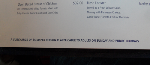 Sunday/Holiday upcharge. OK to be honest this wasn’t at a hotel but rather a restaurant. See image below:
