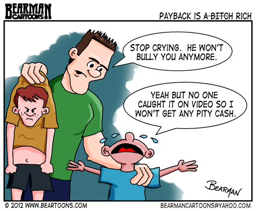 Today’s editorial cartoon is inspired by everyone’s favorite bus monitor, Karen Klein. Oh you haven’t seen the video of her getting bullied relentlessly by little shits? Here it is but be warned the language is harsh and your blood pressure may rise.