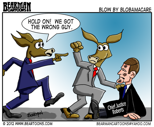 Today’s editorial cartoon is in honor of Chief Justice John Roberts. Seems ever since he has been nominated to the Supreme Court, Democrats have chastised Roberts for being a right winger. There was even speculation during President Obama’s Inauguration that Roberts purposefully flubbed the lines Obama was reciting during his Oath of Office.