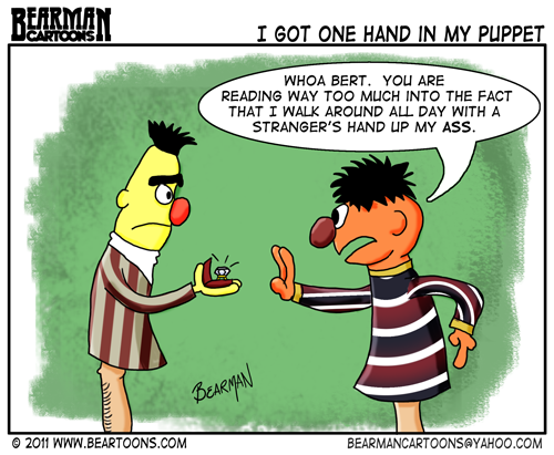 Today’s editorial cartoon stems from the unsuccessful movement to get Sesame Street to out confirmed bachelors, Bert and Ernie, as being gay. While I am for gay marriage, I am with Sesame Street for saying “no”. Thoughts?