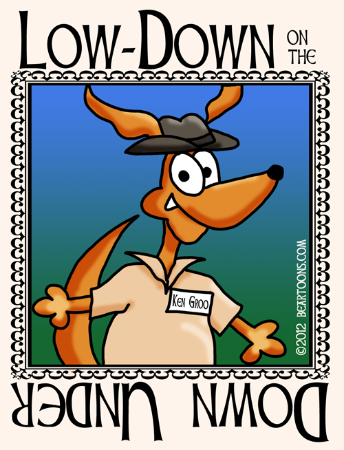 To commemorate my trip to Australia (yes that is where I have been) I am going to do a series of cartoons that give you and idea of what it is like to experience the great Down Under. The Series is “Ken Groo with the Low Down on the Down Under”