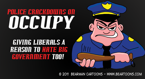 Today’s Editorial Cartoon is sponsored by your local police department. OK maybe not but the cops are getting some bad reputations all over the U.S. as cities try to figure out how to manage the Occupy Wall Street and other Occupy protests.